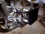 I started flat track racing my SDG with YX140 motor so I thought I should add an oil cooler. I don't like the complicated hoses and upper mount type so I made a head mounted one from the original link banjo fittings and some copper tube and sheet. Silver soldered it all together and ran it, one tube is much cooler than the other so it is working. Simple and light.